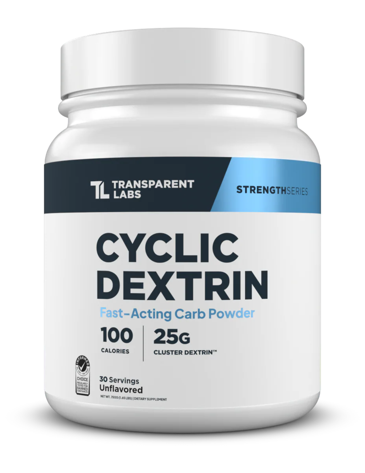 Transparent Labs Strength Series Cyclic Dextrin is a scientifically formulated carbohydrate supplement that enhances workout performance and muscle recovery by bolstering glycogen stores and providing extra energy when you need it most. Each serving delivers 25g of patented Cluster Dextrin®, a novel form of maltodextrin known as highly branched cyclic dextrin.