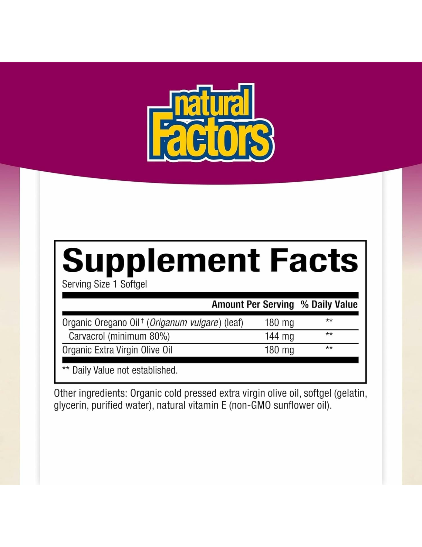 Natural Factors Organic Oil of Oregano is wild-crafted Mediterranean oregano, hand harvested from the Origanum vulgare plant. To maintain the purity and concentration of the active ingredients, the whole herb is gently steam distilled without the use of chemicals. It is then blended in a 1:4 ratio with organic cold-pressed extra virgin olive oil to enhance absorption. Natural Factors Organic Oil of Oregano is guaranteed to contain a minimum of 80% carvacrol, oregano’s main active compound. Oregano oil includes a broad spectrum of health compounds to help support respiratory health and overall immune system equilibrium.