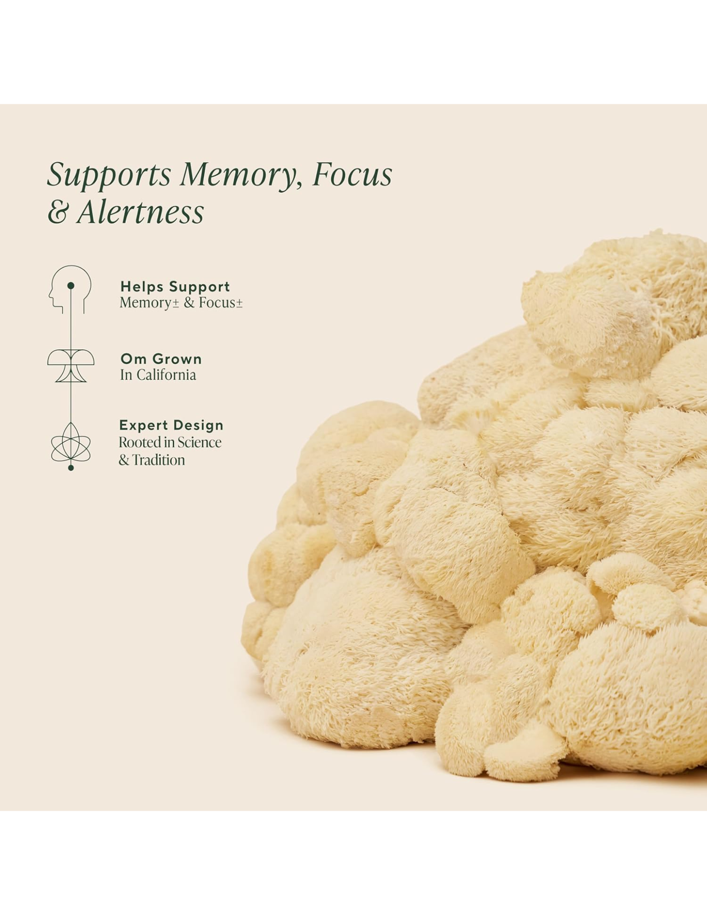 Lion’s Mane Mushroom is known as a brain health superfood that helps support memory, focus, nerve health, creativity, and mood. As part of OM Mushroom’s lineup of functional fungi, each serving delivers a potent dose of organic Lion’s Mane powder to help nourish cognitive performance and mental clarity. These capsules are USDA Organic, Non-GMO Project Verified, gluten-free, and vegan, grown and third-party lab-tested for purity and potency.
