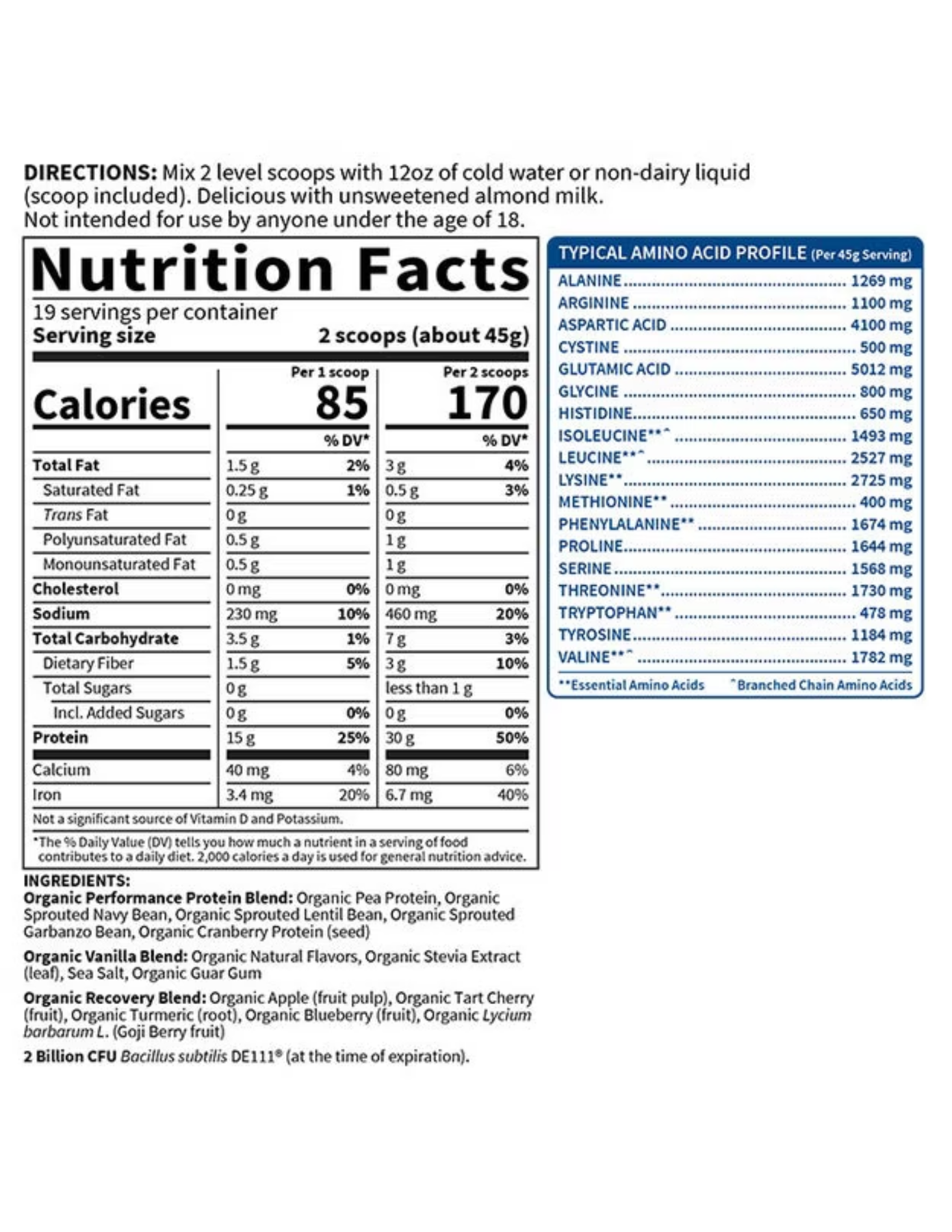 SPORT Organic Plant-Based Protein Powder - Vanilla